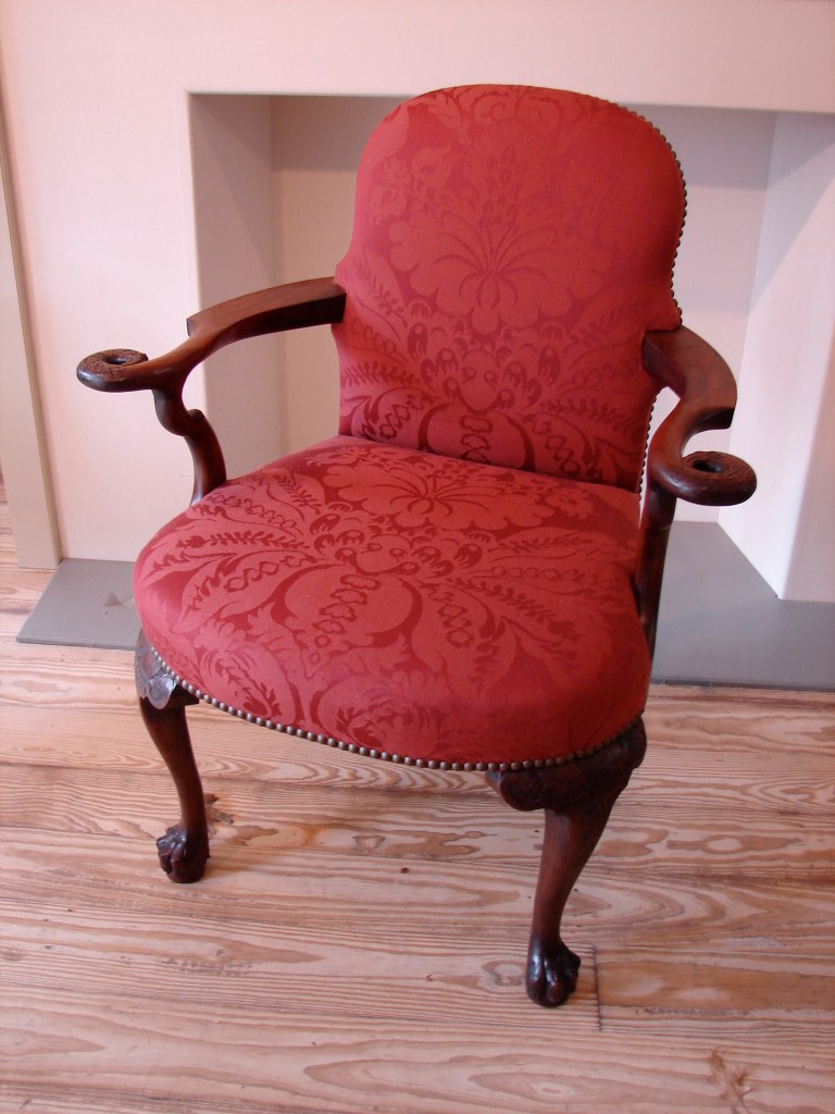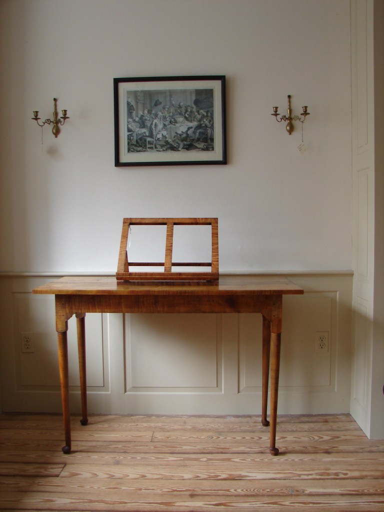 They can be used around a table, like this one or something more modern. This is a curly maple tea table based on examples made by John Townsend in Newport, Rhode Island c.1760-1790.