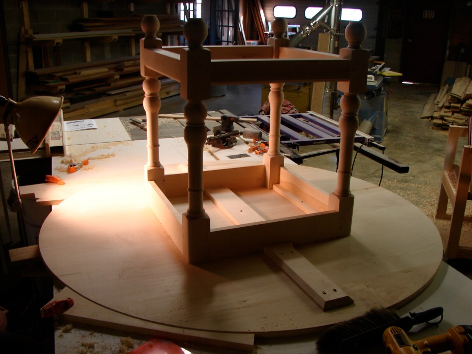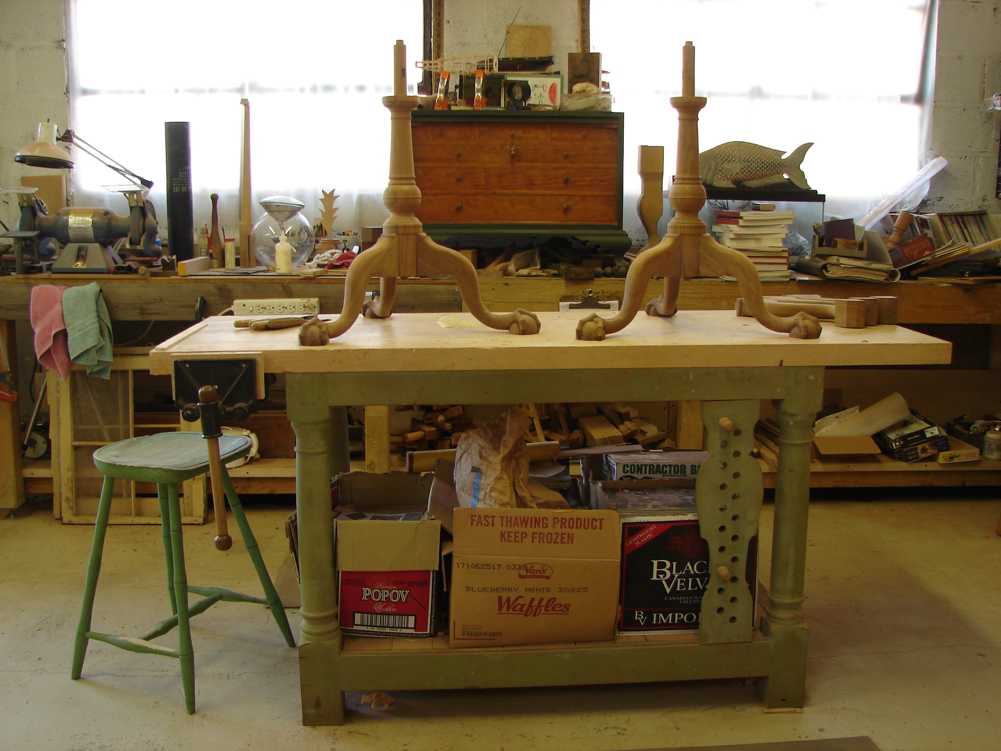 One piece of furniture that you often see in my pictures, but that never gets mentioned, is my work bench. This one is the first bench I ever made. It was meant to be a show piece for my store, and to serve as a counter when helping customers with their purchases. It’s completely functional and I use it for demonstrations on weekends.