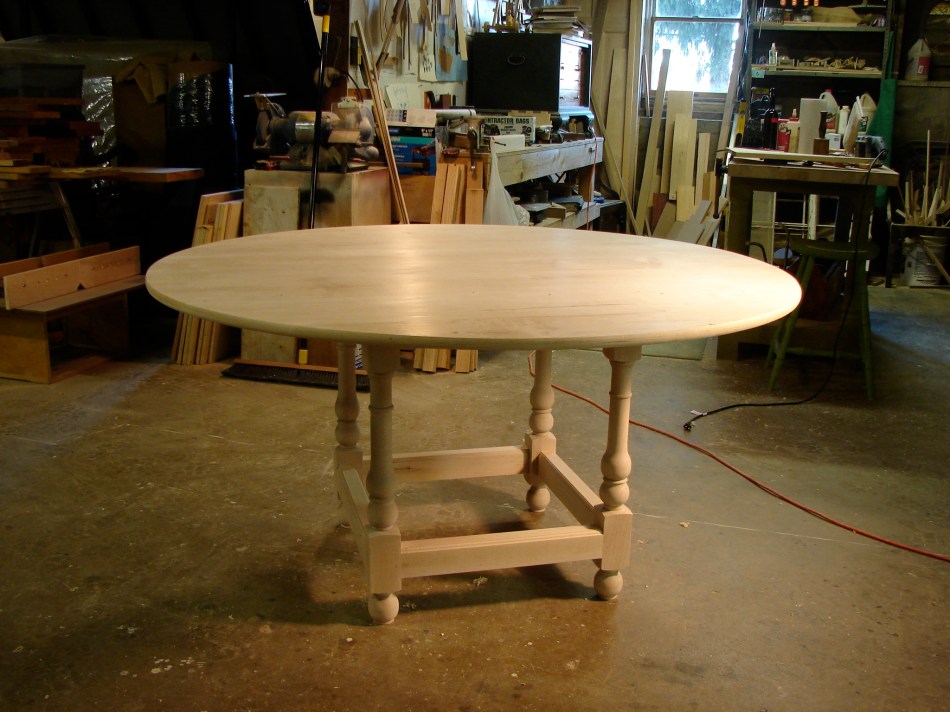 My favorite round tables are gate-leg drop-leaf tables, meaning the top can hang down if the gate-leg is folded in. These tables can be any where from 3 feet wide to 8 feet. The large tables are usually ovoid. They commonly have turned legs like this table, but also could have straight ,tapered or cabriole legs. One of my favorites is a New York table with eight ball & claw feet.