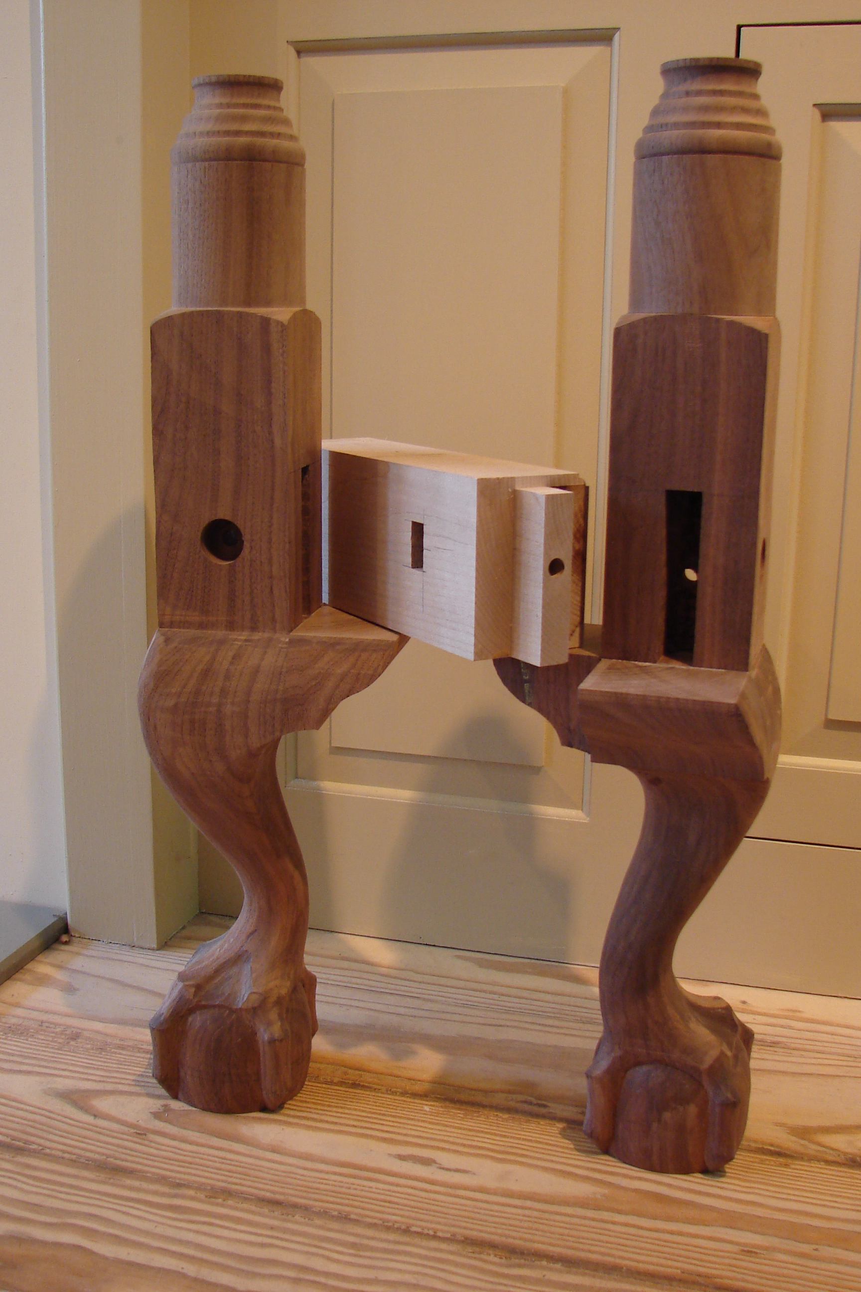 These are legs for a tall post bed showing the mortise and tenon joints and the holes for bed bolts. This makes for an incredibly strong joint, so strong they are sometimes used on work benches. This makes it possible to dis-assemble the bed easily for moving.