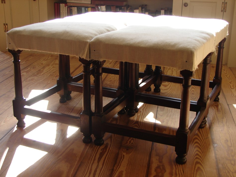 This is a stool I had been wanting to make for a while. It is based on a stool possibly made in Philadelphia between 1680 and 1720. I just love the square structure and simplicity of the doric columns. The original piece is quite small so I scaled it up a bit for a more comfortable seating height.