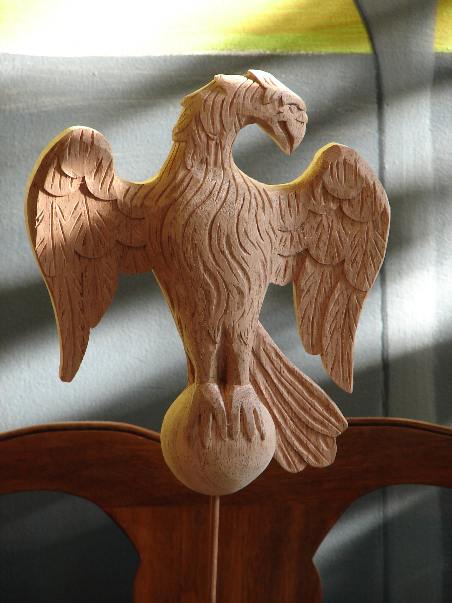 I re-painted it a few years later with a phoenix bird in red. Taken from a finial on a famous Philadelphia chest-on-chest.